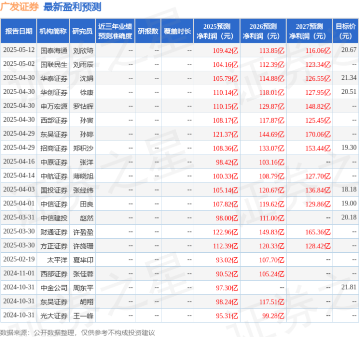 以下是详细的盈利预测信息: